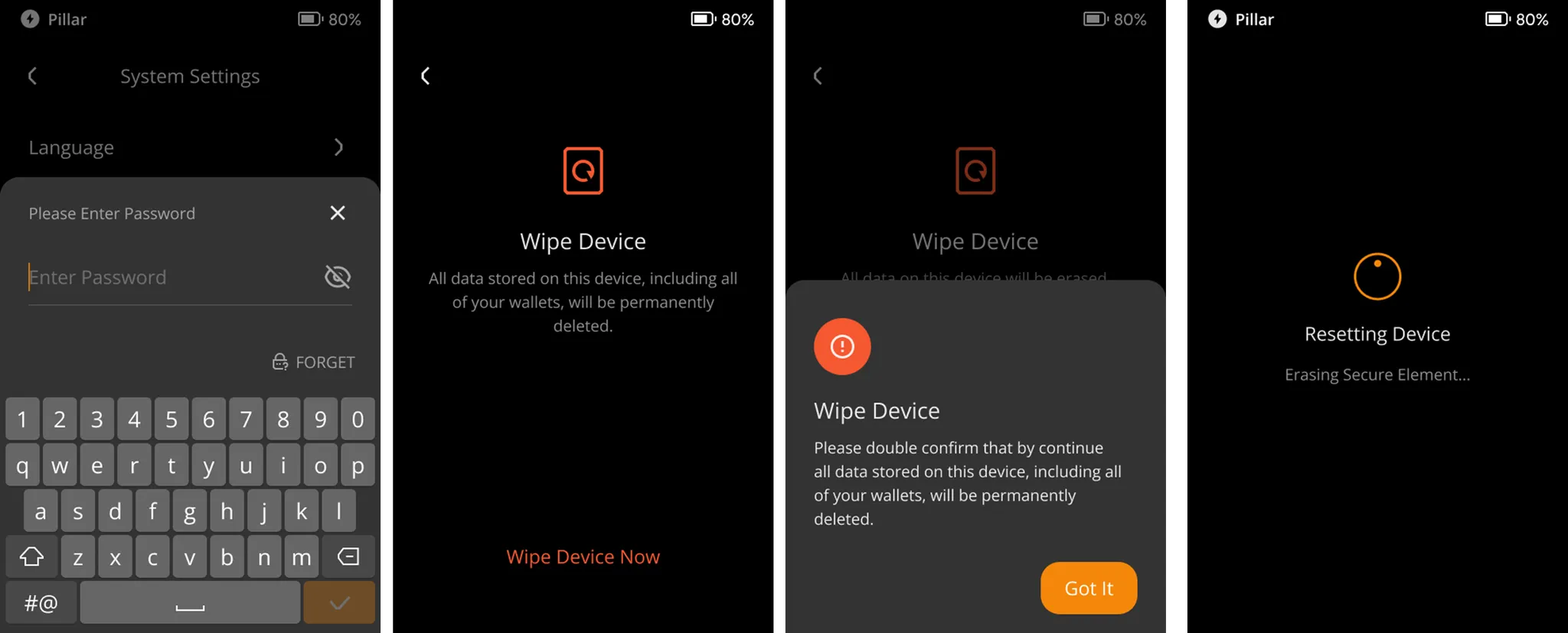 기기를 초기화하면 Keystone의 모든 사용자 데이터가 지워지지만 펌웨어 버전은 롤백되지 않습니다.