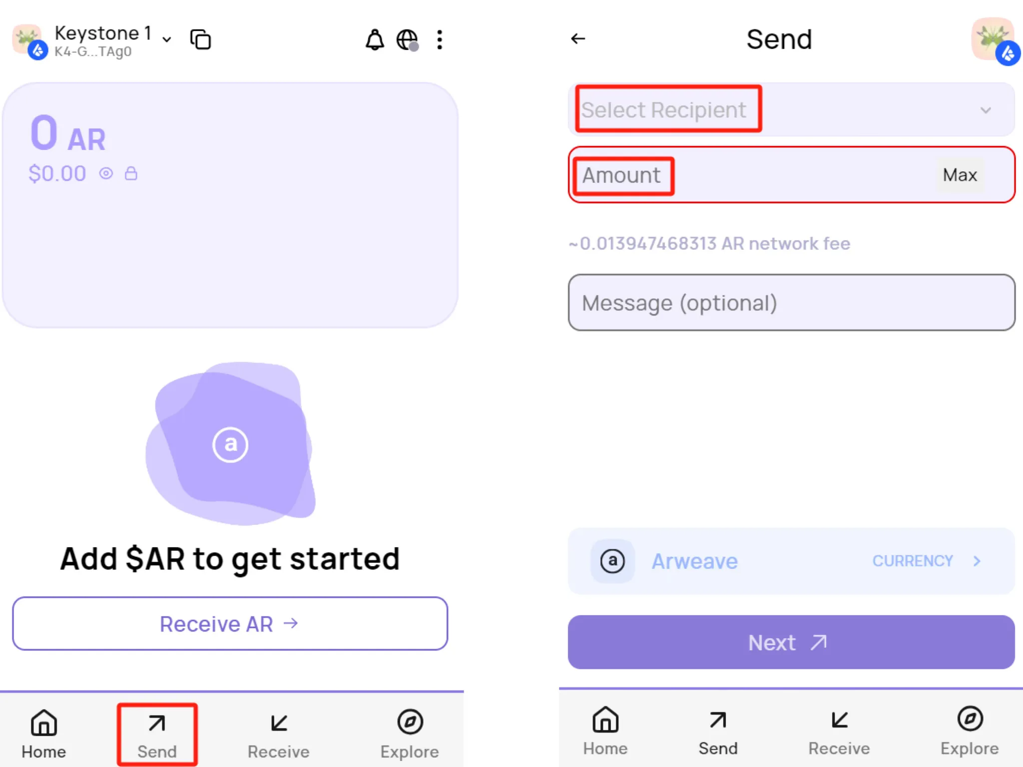 3단계: Keystone 하드웨어 지갑으로 AR 보내기