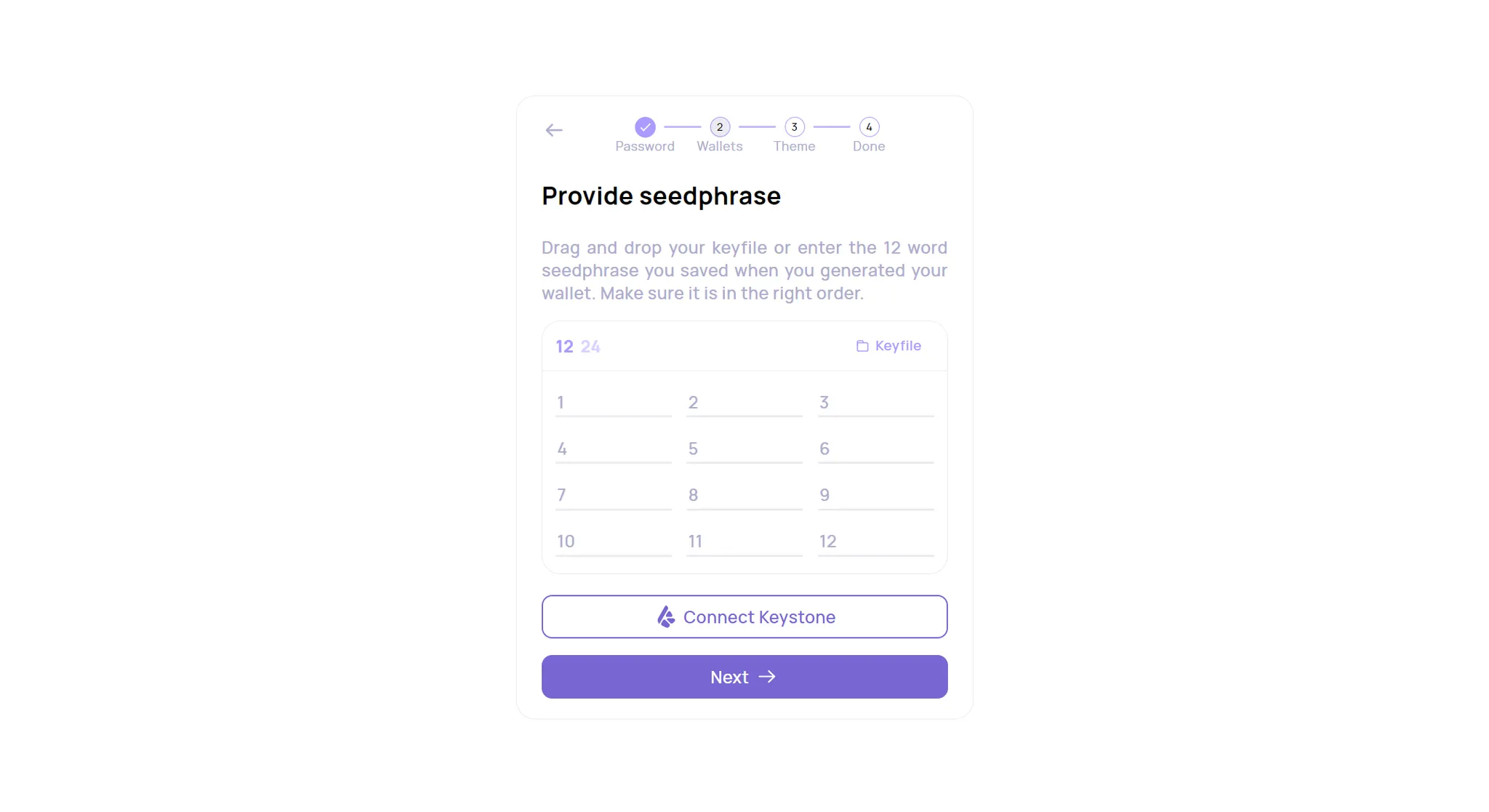 Keystone 하드웨어 지갑을 ArConnect에 연결하려면 다음 단계를 따르세요.