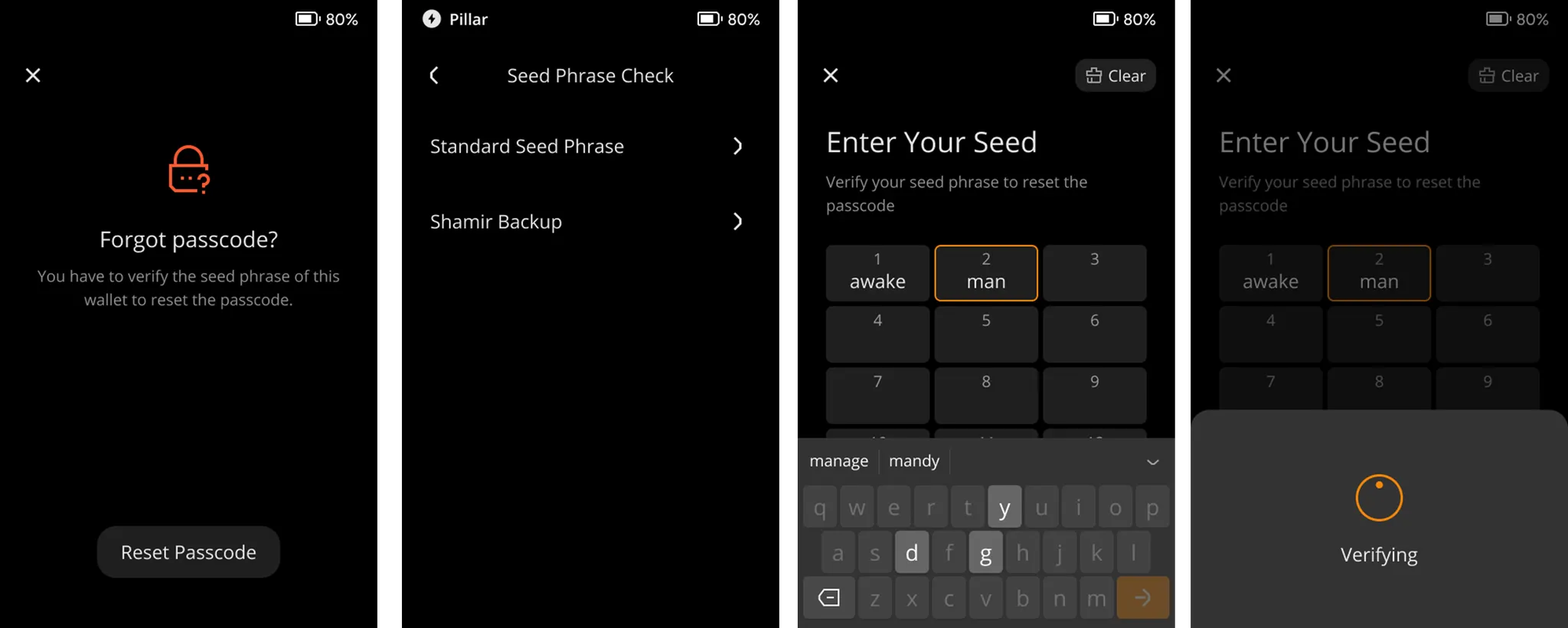 비밀번호를 잊어버린 경우 시드 문구를 확인하여 비밀번호를 재설정할 수 있습니다.
