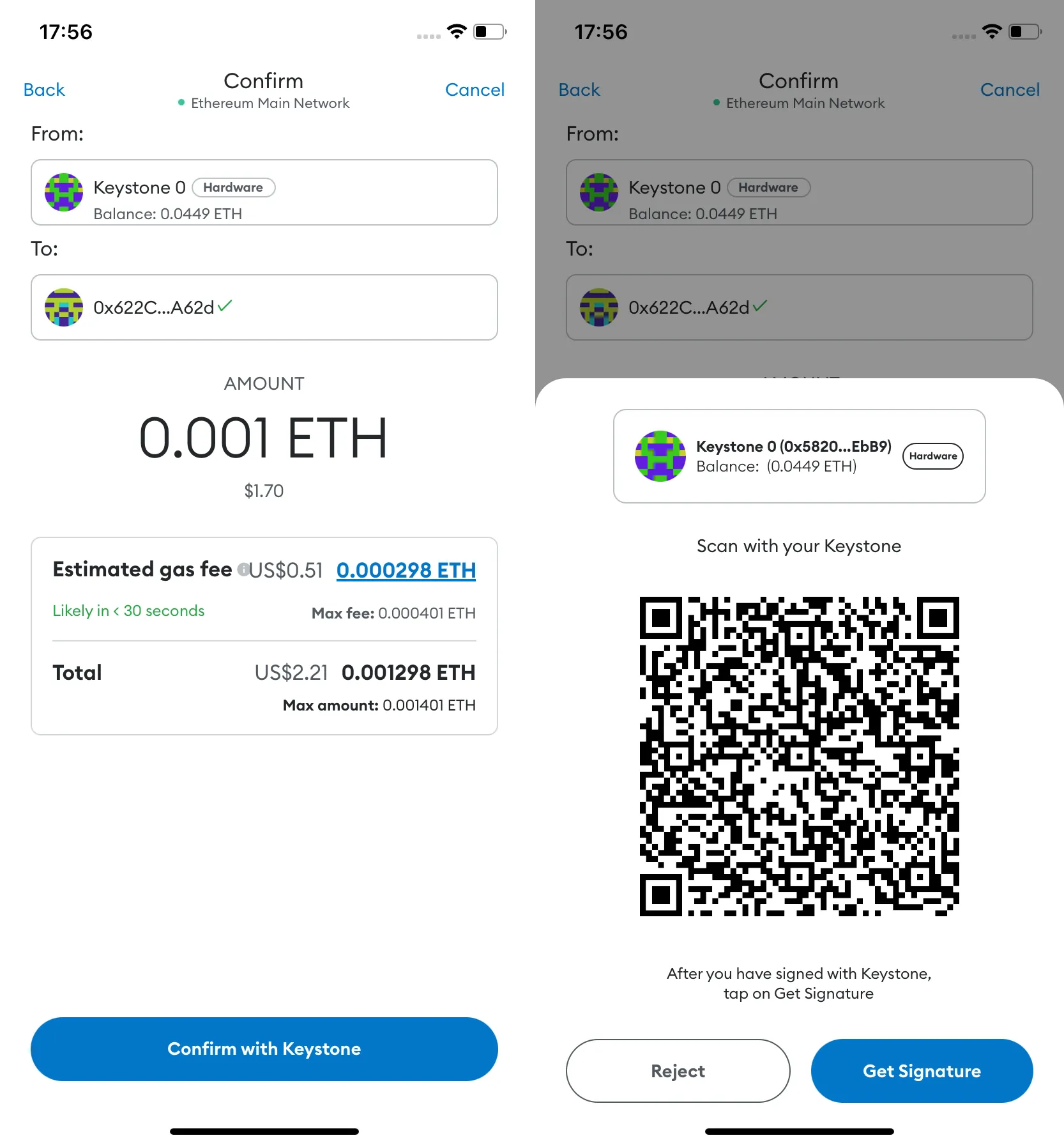 2단계: Keystone Hardware Wallet을 MetaMask Mobile