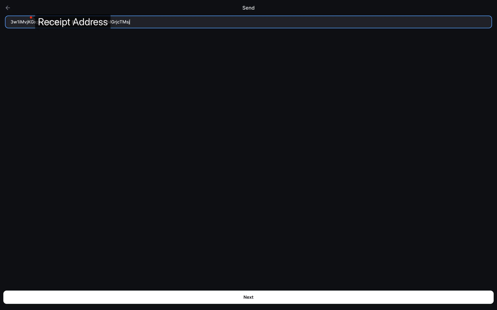 [보내기]를 클릭 > 금액과 수취인 주소를 입력하세요. 그 후 다음 단계로 넘어가기 위해 [다음] 을 탭하세요.