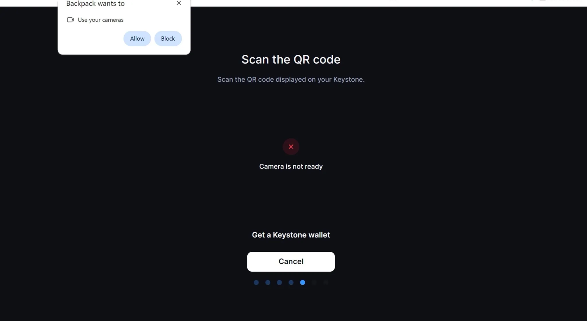 이제 Backpack Wallet으로 스캔할 준비가 되었습니다.