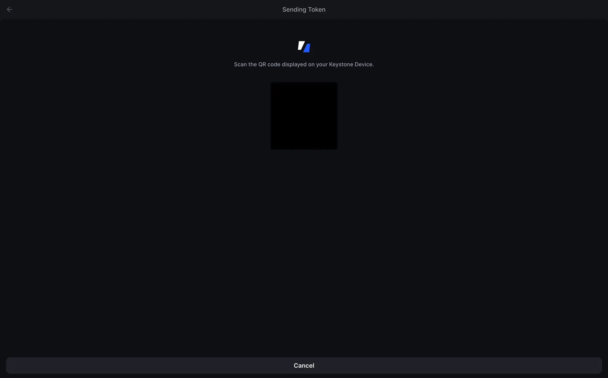 [백팩]을 선택하면 Keystone 장치에 QR 코드가 표시됩니다.