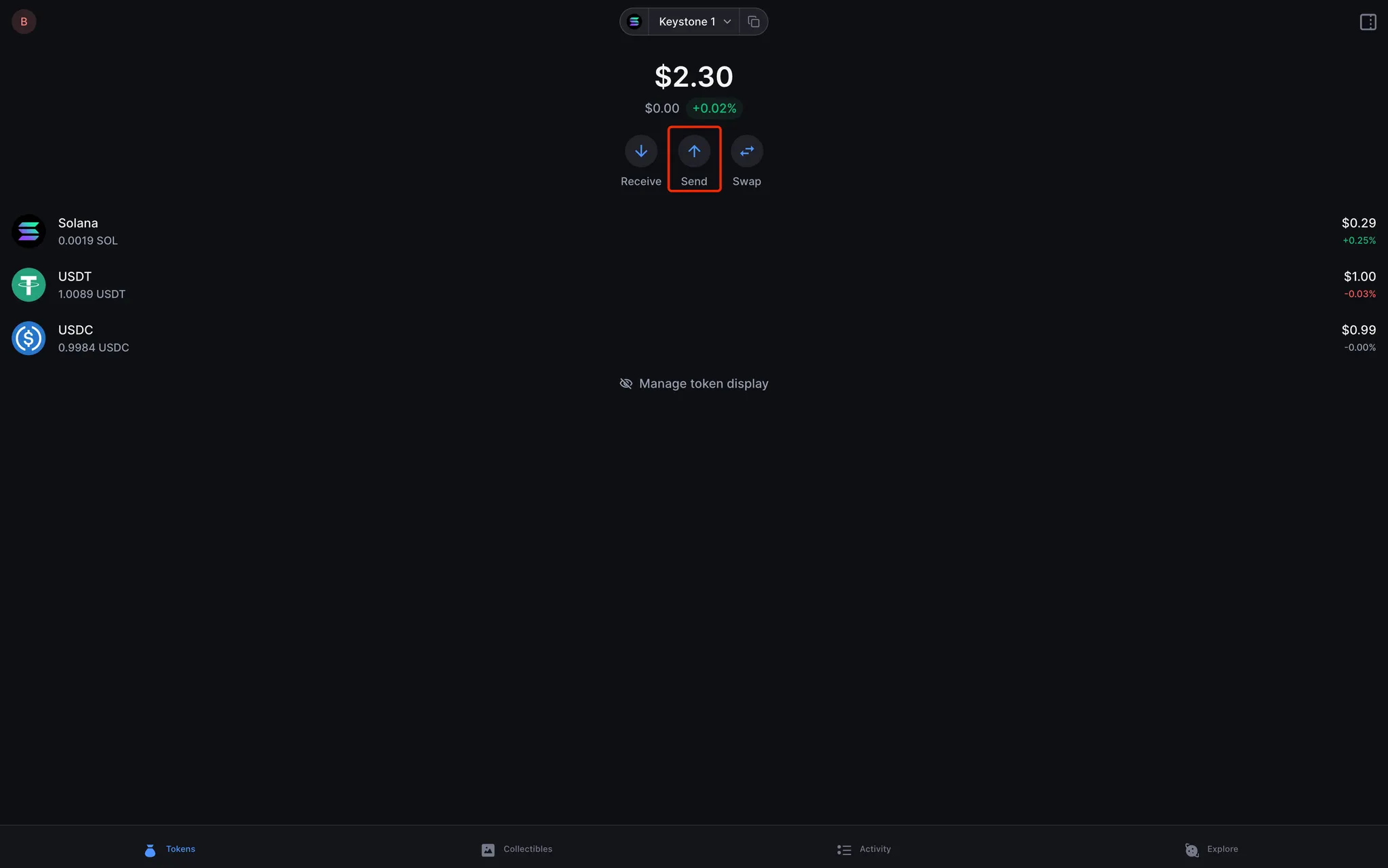 2단계: Keystone Hardware Wallet으로 Solana 보내기