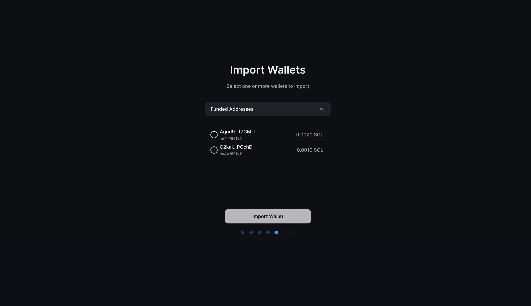가져올 경로와 계정을 선택한 후 [지갑 가져오기]를 탭하세요.