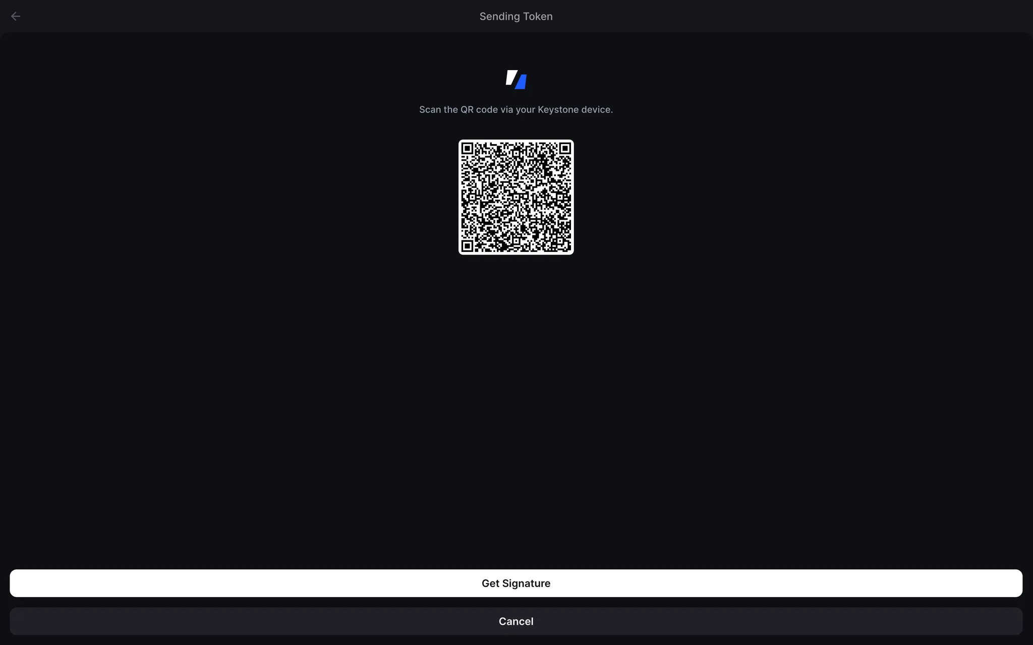 [서명 받기]를 클릭하고 Keystone에 표시된 서명 QR 코드를 스캔하세요.