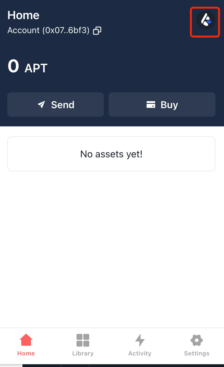 브라우저를 열고 오른쪽 상단에 있는 Petra 지갑 확장 프로그램 아이콘을 클릭하세요.