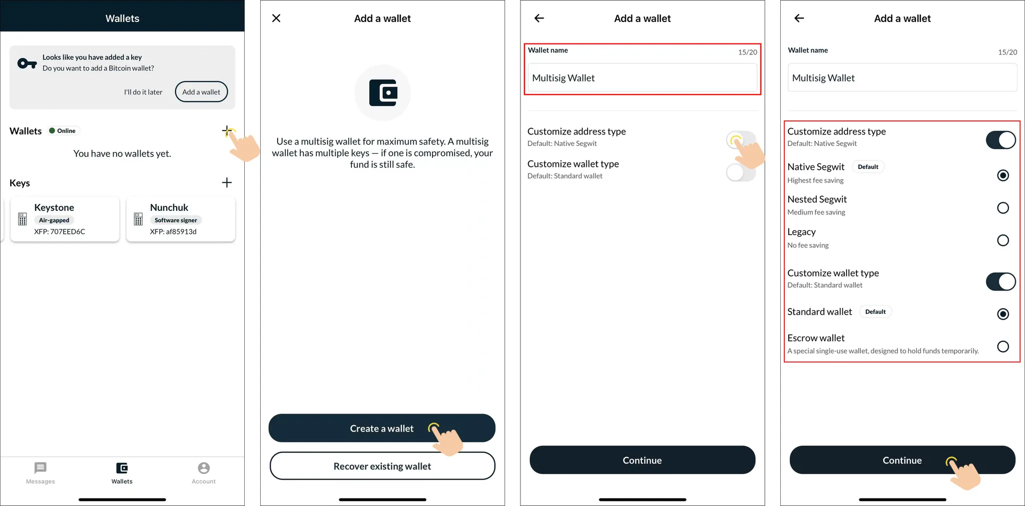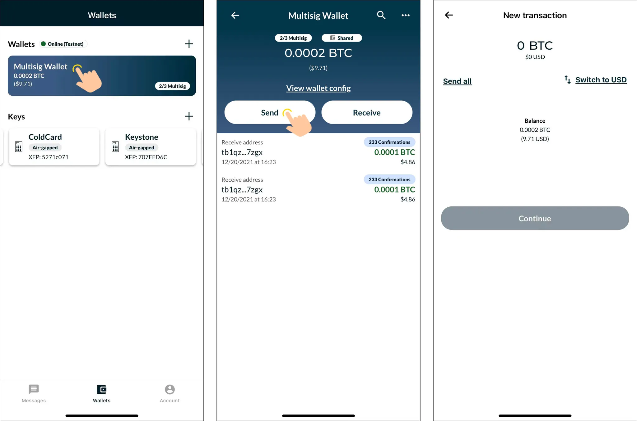 3. Nunchuk 앱에서 Multisig 지갑을 만들고 관리합니다 .