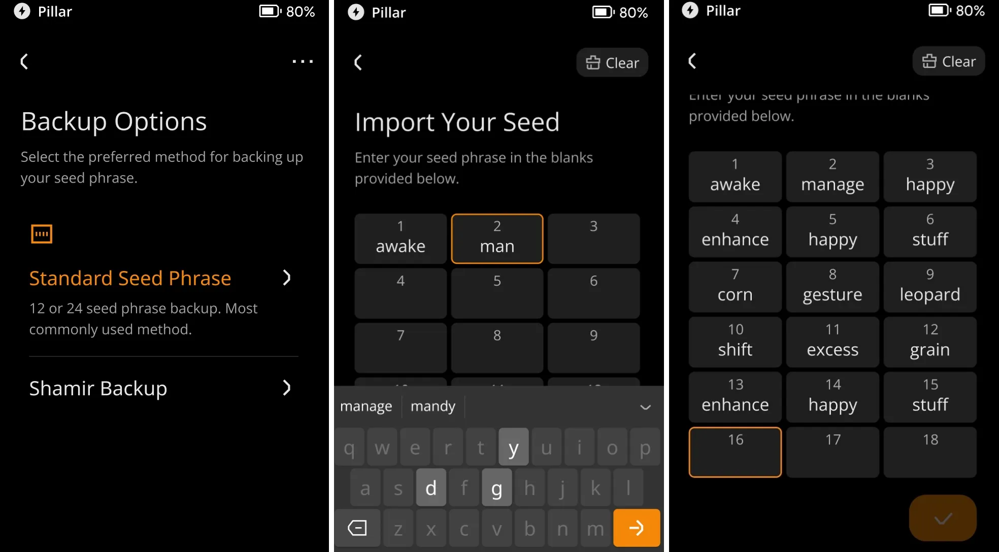장치가 니모닉을 생성할 때까지 기다렸다가 니모닉을 비공개로 백업하세요. 니모닉이 분실되지 않도록 안전한 곳에 보관하세요.