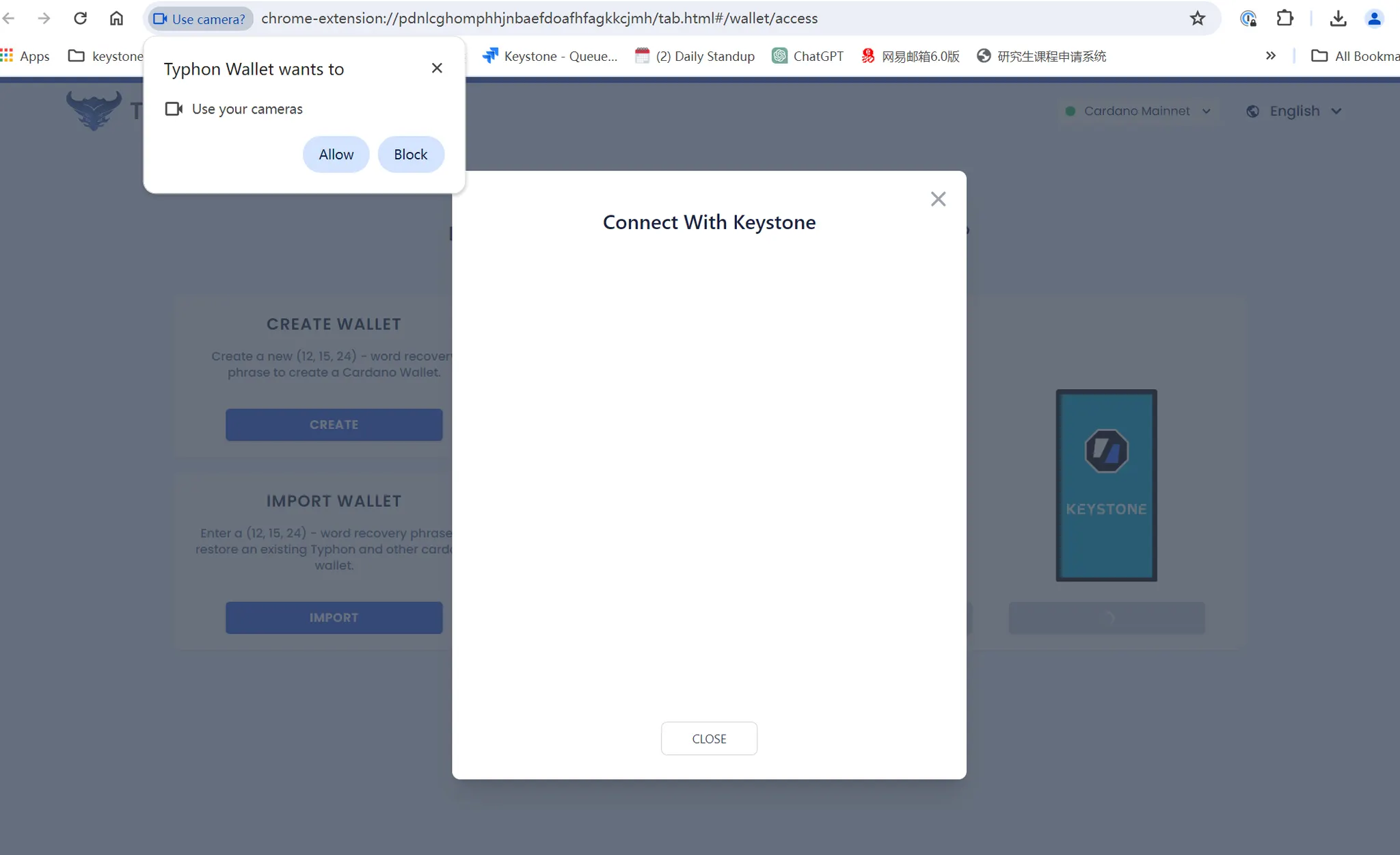 표시된 Typhon Extension의 QR코드를 스캔하고 [승인]을 클릭하면 Keystone 기기에 QR코드가 표시됩니다.