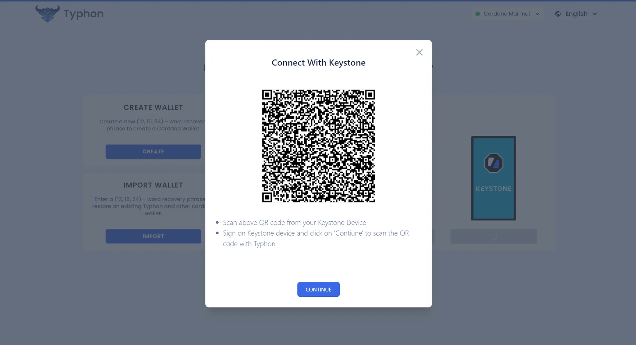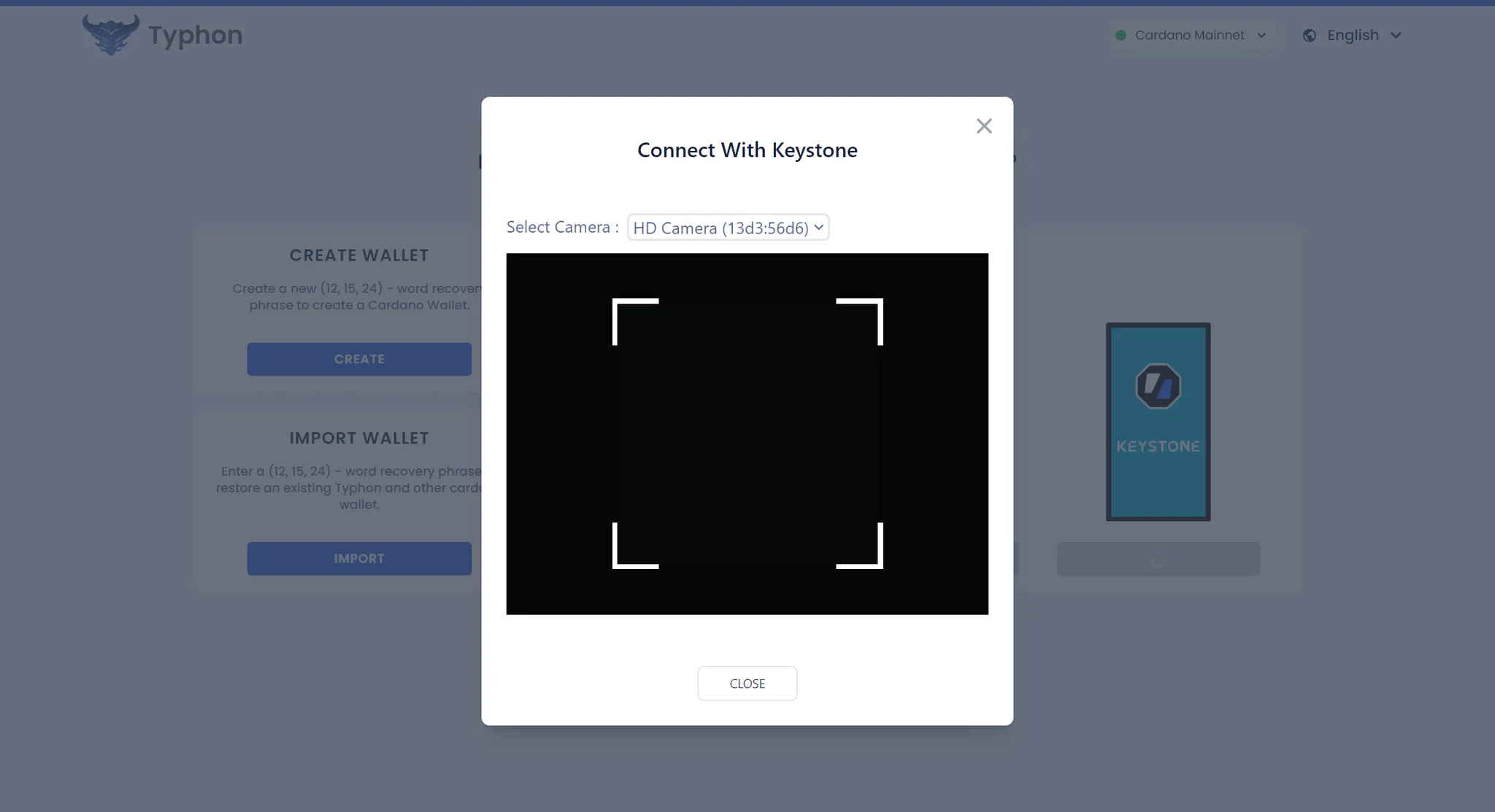 Typhon Extension에 QR 코드가 표시되면 Keystone Device가 위의 QR 코드를 스캔할 준비를 합니다.