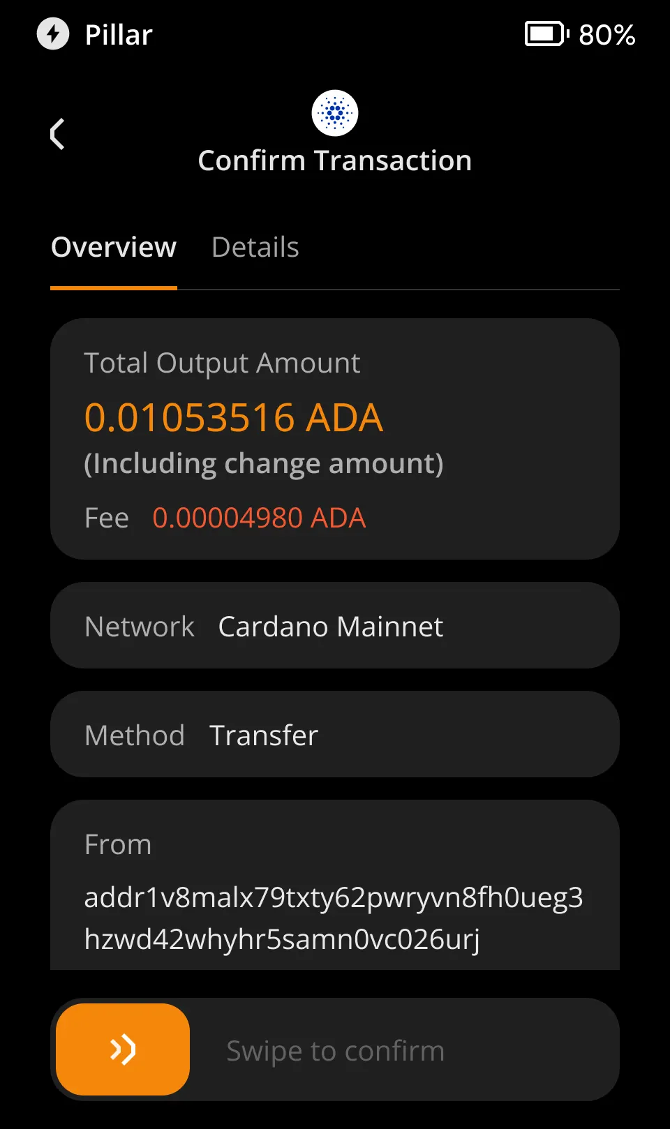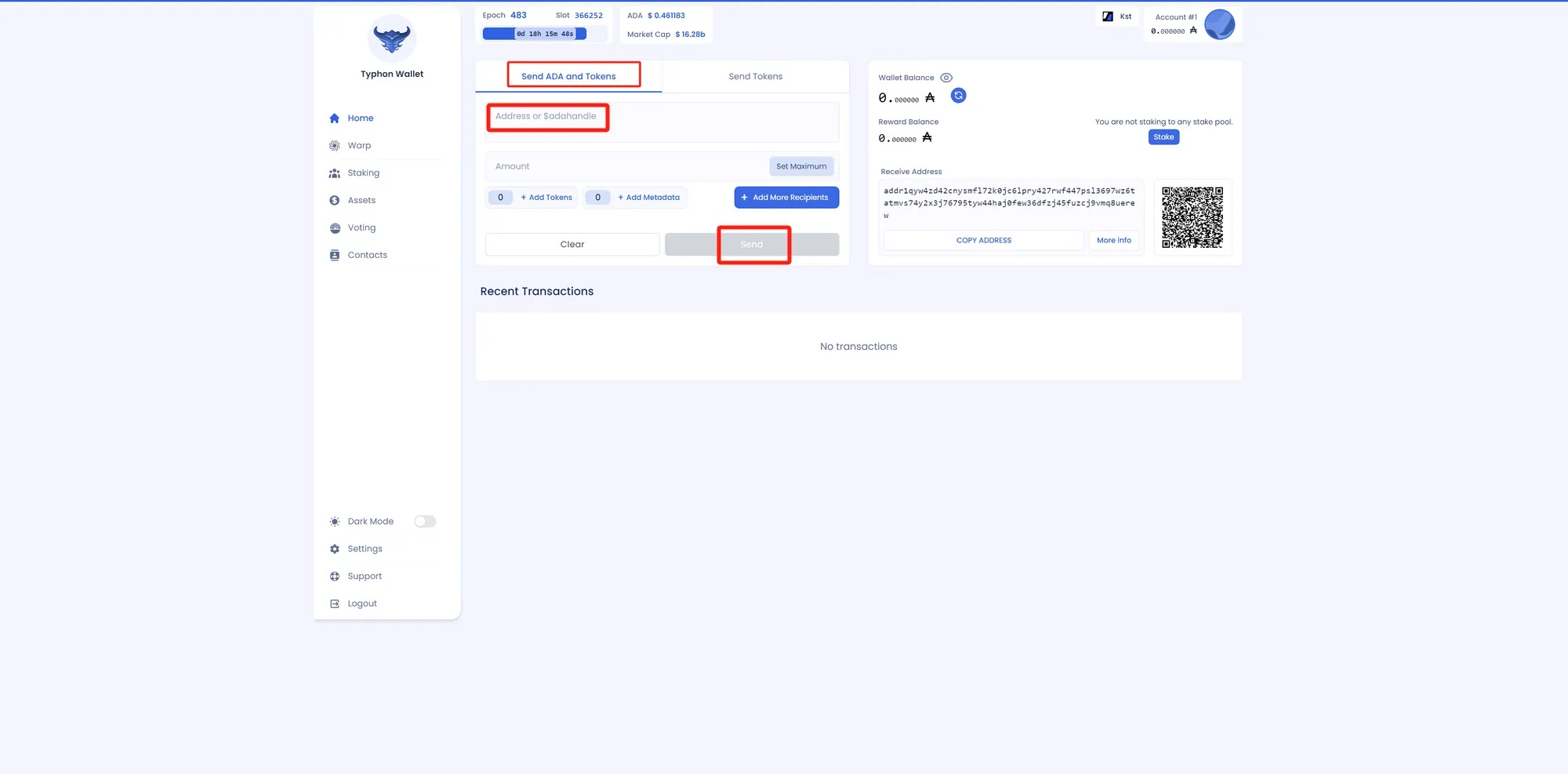 3단계: Keystone Hardware Wallet으로 ADA 보내기