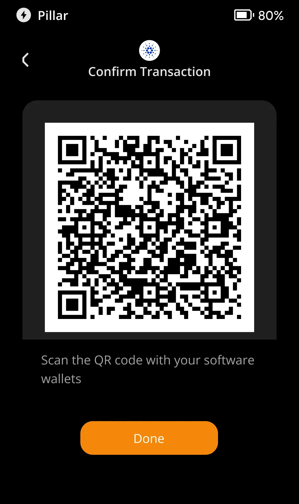웹캠을 사용하여 Keystone 장치 측면에 표시된 서명 QR 코드를 스캔합니다.