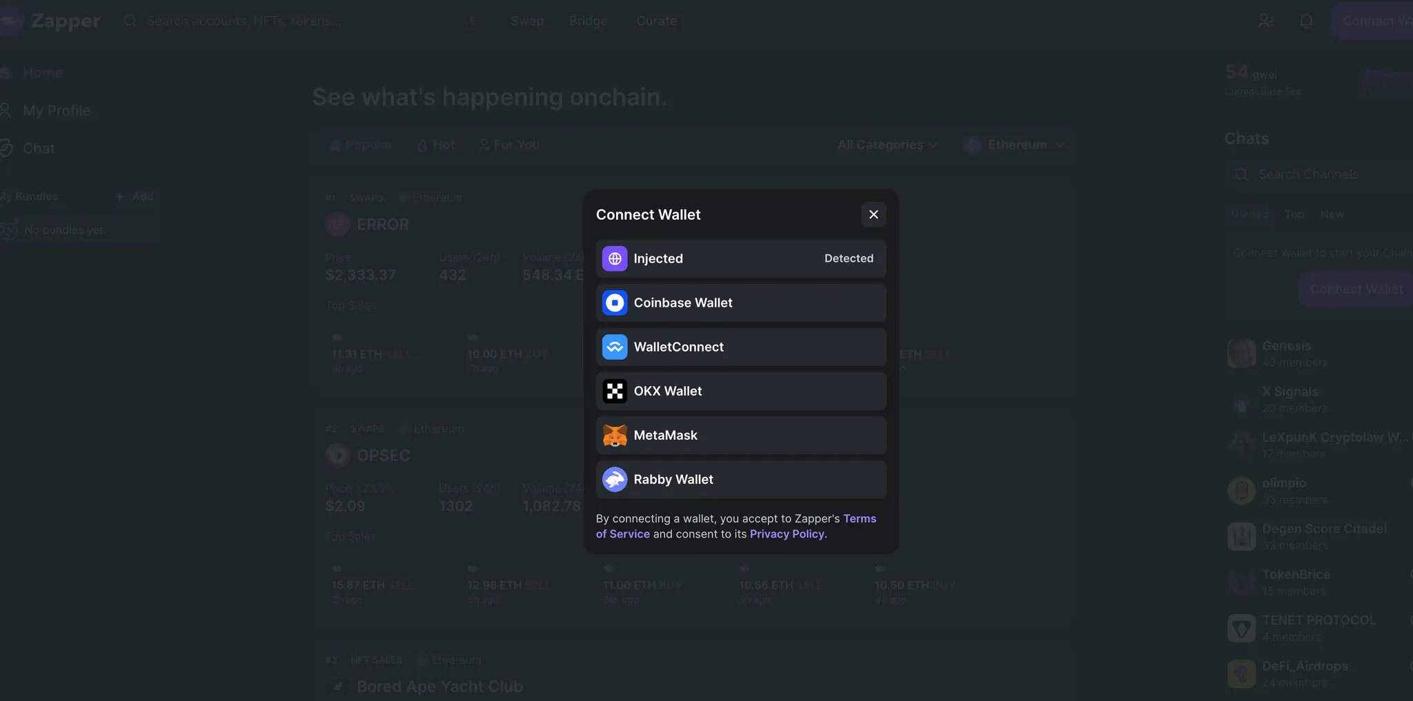 이 튜토리얼에서는 Keystone을 MetaMask 또는 OKX Wallet 또는 Rabby Wallet에 연결한 후 Zapper(dApp)와 상호 작용하는 방법을 소개합니다.