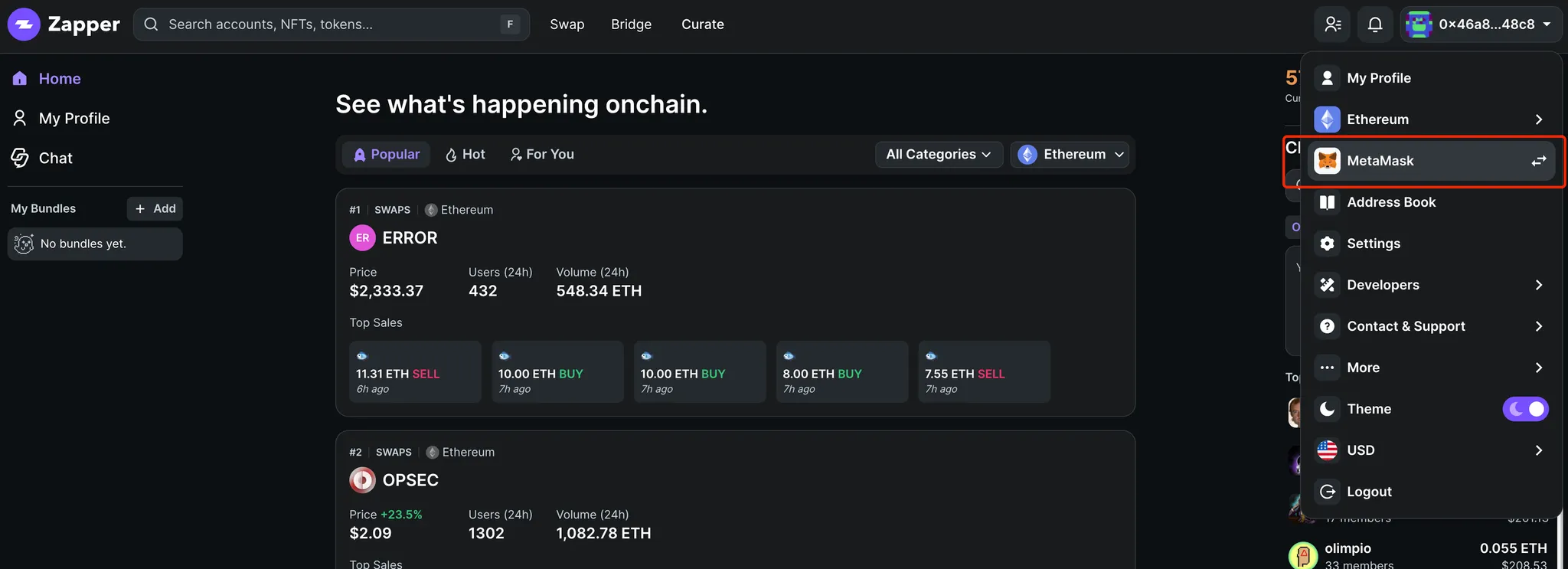 MetaMask를 Zapper(dApp)에 연결하기 :