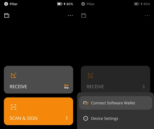 오른쪽 상단에 있는 "..." 아이콘을 탭합니다. "소프트웨어 지갑 연결"을 클릭합니다.