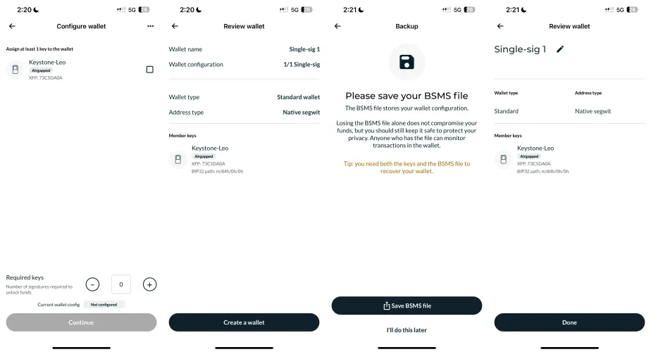 다 됐어요! 이제 귀하의 BTC 주소가 Nunchuk 및 Keystone과 동기화되었습니다. 앱의 기능을 탐색하고 Keystone 하드웨어 지갑으로 안전한 거래를 수행할 준비가 되었습니다.