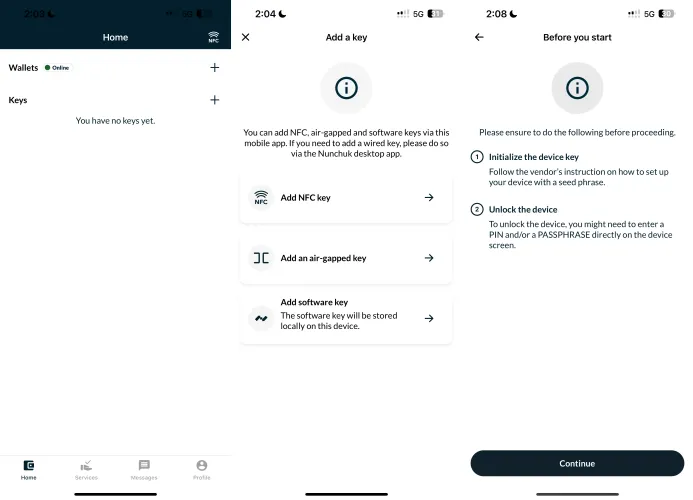 Nunchuk 앱 V1.9.43이 기기에 설치되었습니다. Google Play Store 또는 App Store에서 다운로드할 수 있습니다. 자세한 정보가 필요하면 공식 Nunchuk 웹사이트를