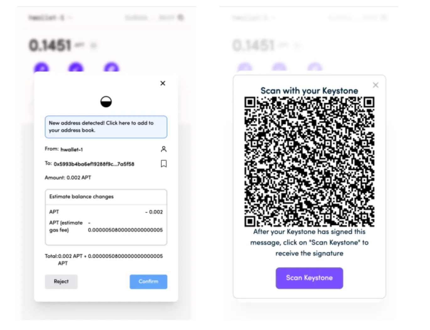 축하합니다! Keystone 하드웨어 지갑이 이제 Fewcha 앱으로 성공적으로 가져왔습니다.