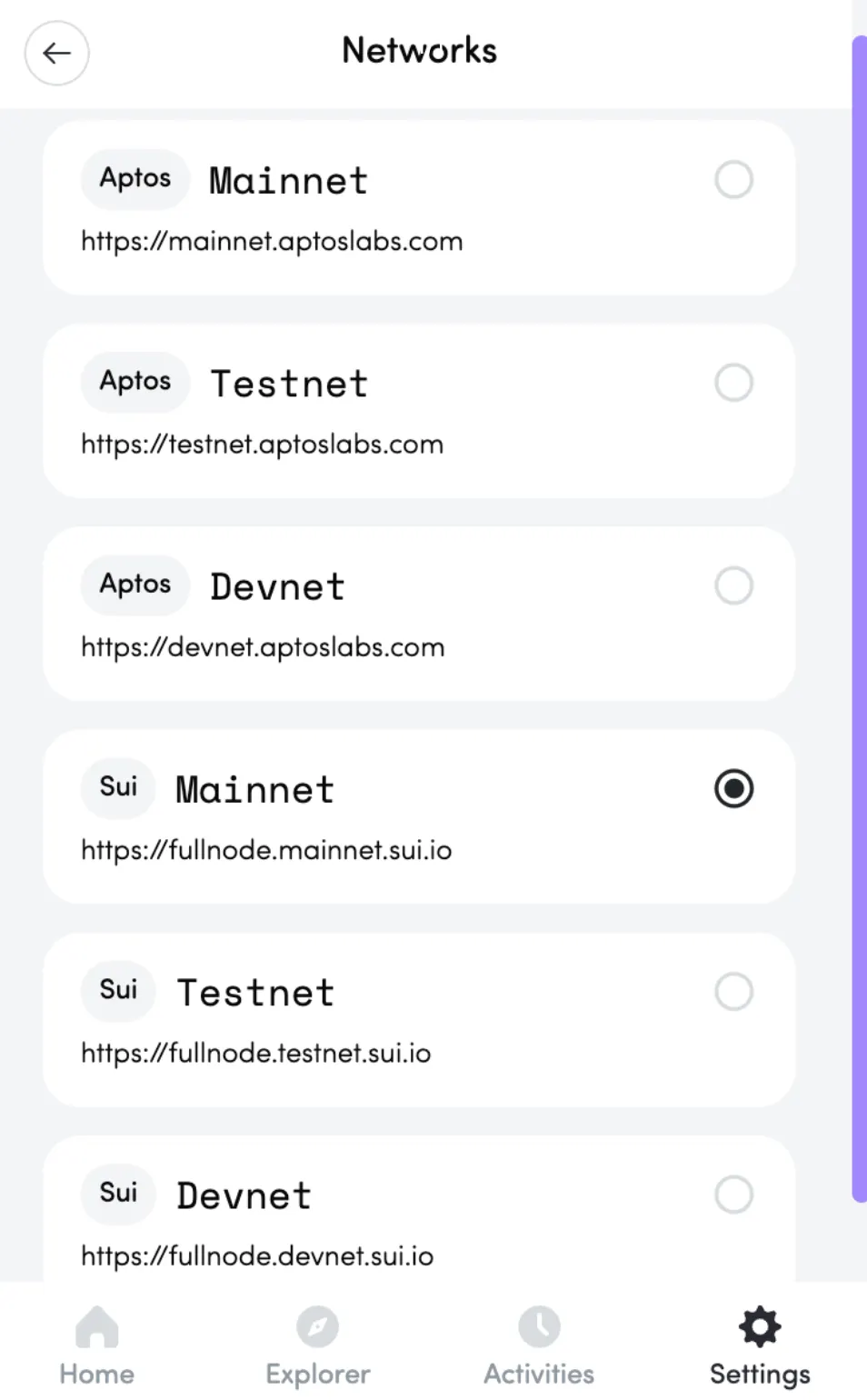 Keystone에서 Sui에 접속하려면 1.1.0 이상으로 업그레이드했는지 확인하세요.