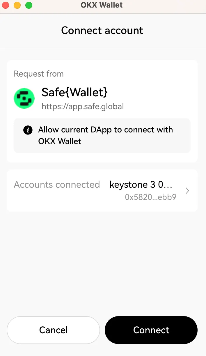 이 튜토리얼에서는 OKX Wallet과 Keystone을 소유자 키로 활용하여 다중 서명 지갑을 만드는 과정을 설명합니다.