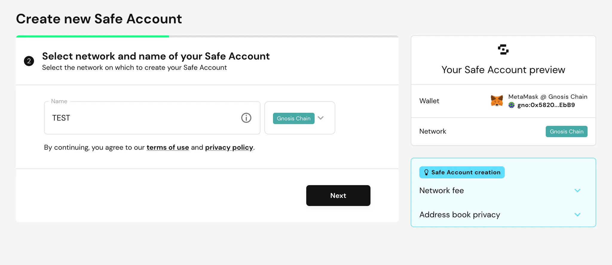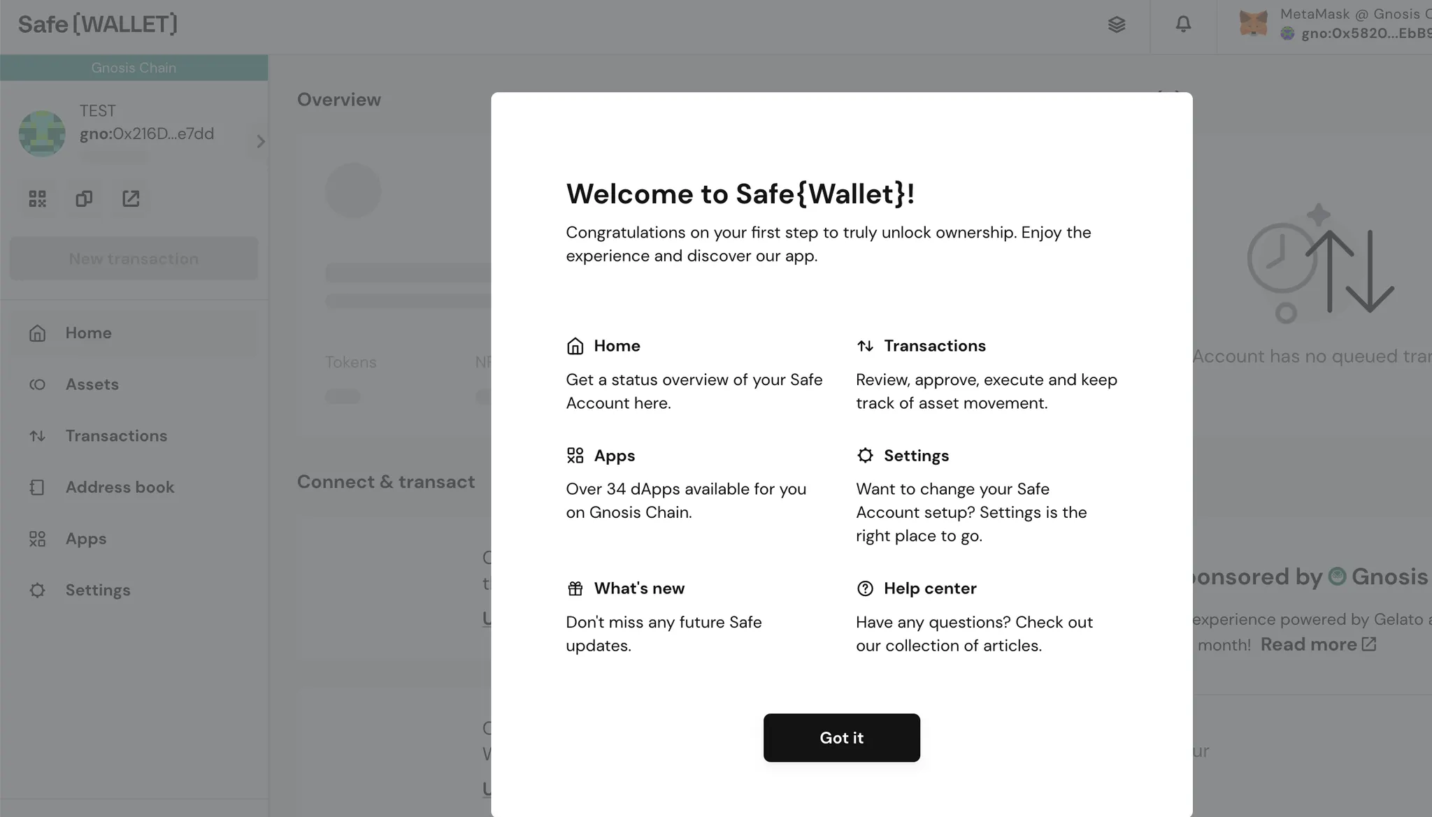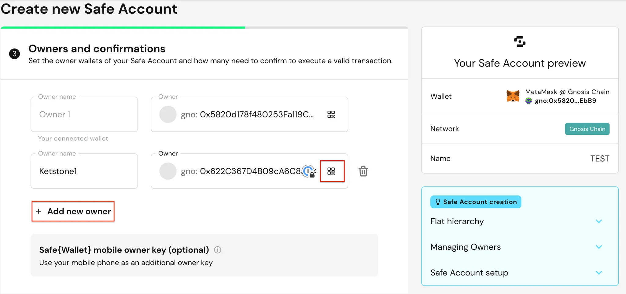 Safe{Wallet}은 EVM 체인에 대한 지원을 확장하는 강력한 다중 서명 지갑 솔루션을 소개합니다. Safe Wallet 내에서 다중 서명 지갑을 만드는 것은 "소유자 키"라고 하는 기본 지갑을 연결하는 것을 포함합니다. 적절한 네트워크를 선택하면 추가 주소를 가져와서 보충 "소유자 키"를 설정할 수 있습니다. 이 통합은 다중 서명 지갑 구조의 형성으로 절정에 달합니다. 특히, 이 지갑으로의 모든 자산 이전은 거래를 성공적으로 실행하기 위해 하나 이상의 소유자 키의 보증이 필요합니다.