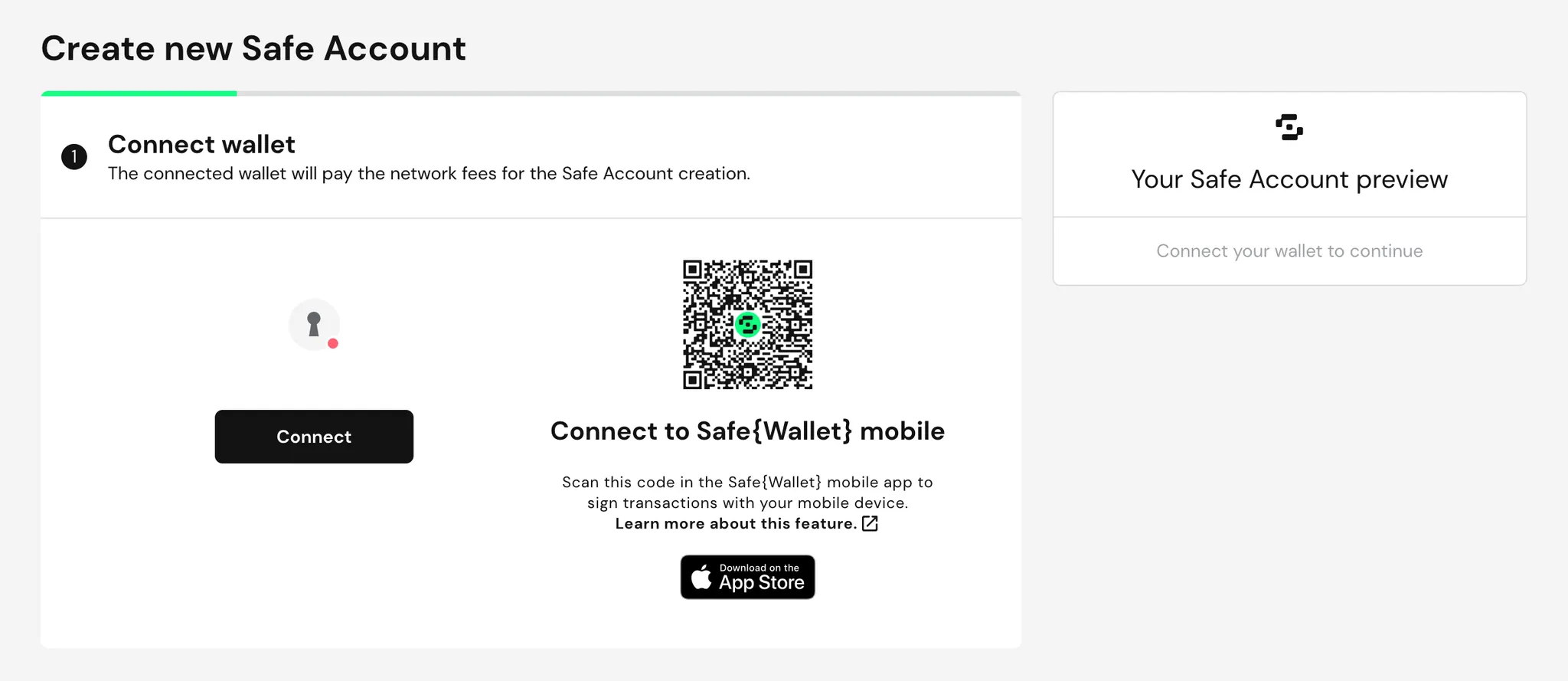 안전 웹 지갑에 접속하면 [안전 계정 만들기]를 클릭하여 프로세스를 시작하세요 .